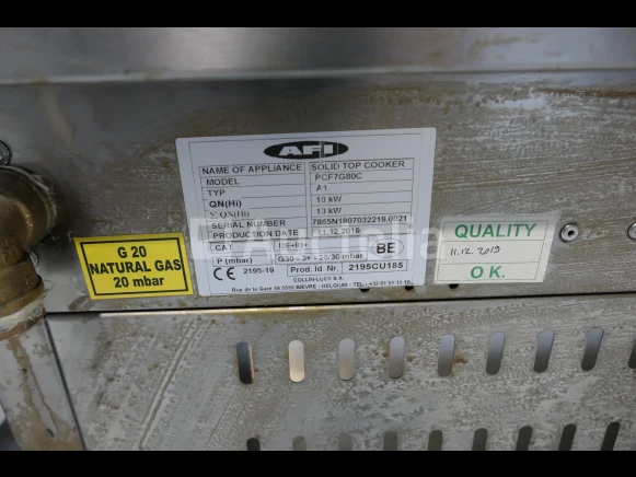 Gasschot Merk: AFI Model: PCF7G80C Jaar: 2019 Lengte: 80 cm Breedte: 74 cm Hoogte: 87 cm Vermogen: 10 kW Aantal: 1 Getest: Nee Staat: Niet getest Opmerkingen: Aanbevolen bezoek