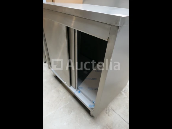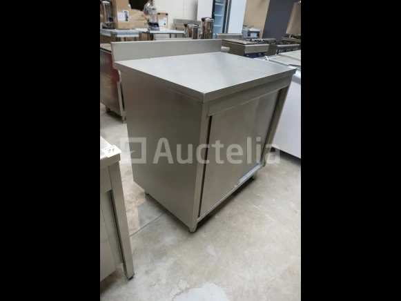 Rvs 2-deurs schuifkast met fronton aan de achterzijde