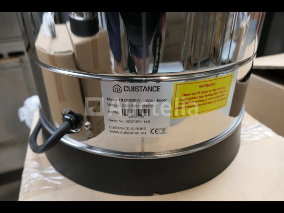 Boiler Merk: Cuistance Model: HLB180S-A1 Spanning: 230V Mono Vermogen: 2500 watt Aantal: 1 Getest: Nee Staat: Nieuwe apparatuur in de verpakking Inhoud: 18 liter