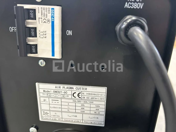 Rated power: 9.2 KVA; Rated current: 14 A; No-load voltage: 256 V; Output current adjustment: 20-60 ; Rated output voltage: 104 V; Max cutting thickness: 20 mm; Cyclic duration factor: 60%; Efficiency: 70%; Insulation grade: F; Protection grade: IP21; Arc-start: Contact;