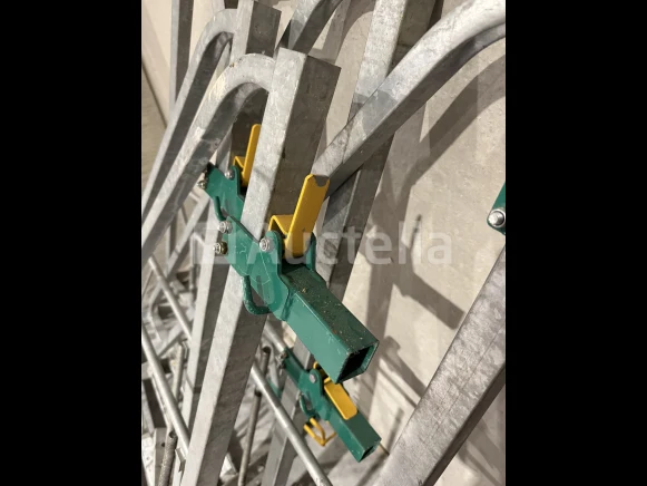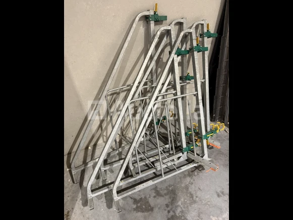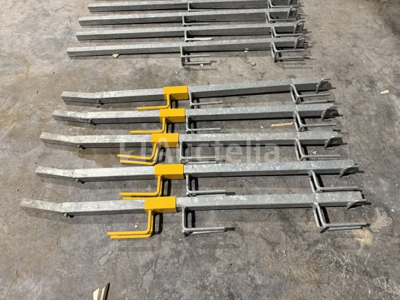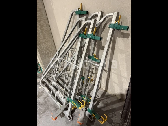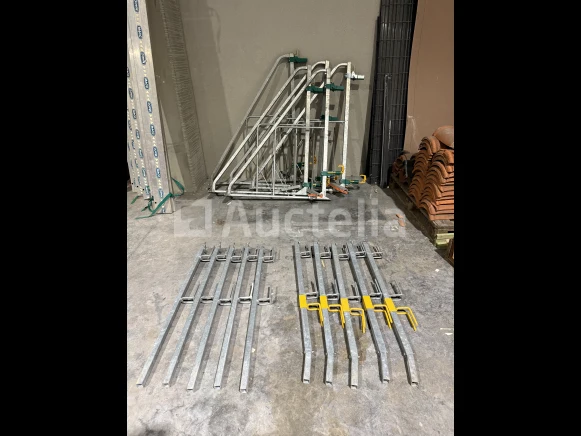 5 gegalvaniseerde stalen steigerbeugels (met bevestigingsstang) + MACC Leuningen/Mollige Beugels