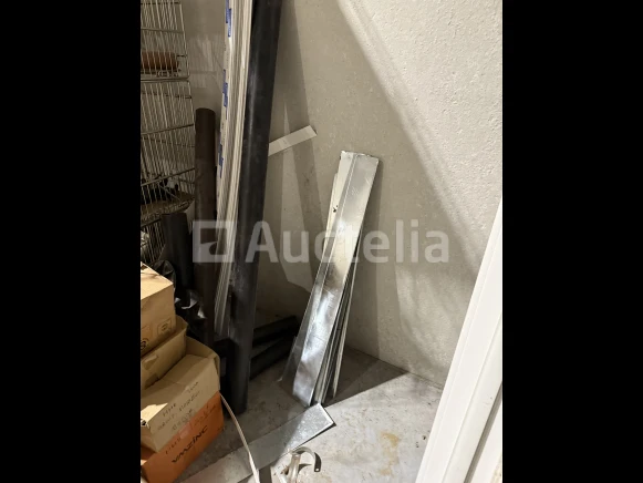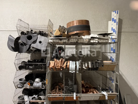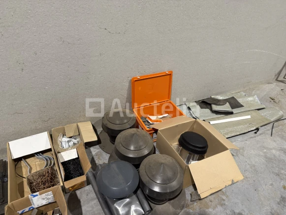 Grote hoeveelheid materialen, dienstig voor dakwerken en afwatering : koper - inox - alu - galva - pvc netmanden inbegrepen