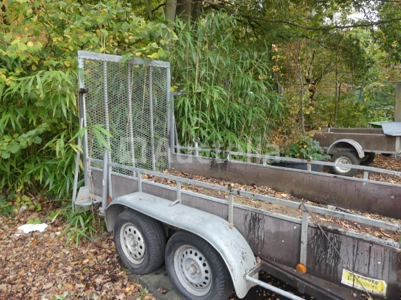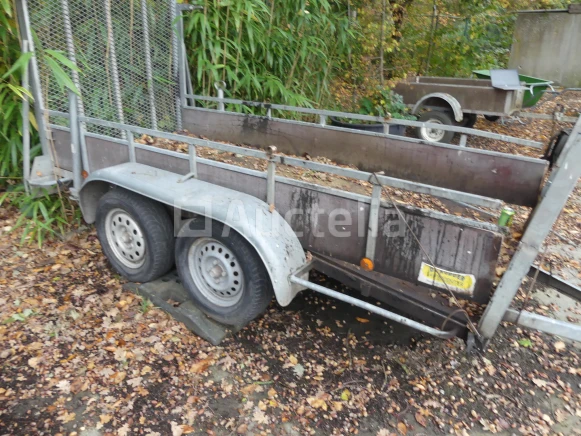 Dubbelassige aanhangwagen (voor onderdelen) Merk: De ridder Lengte: 410 cm Breedte: 175 cm Hoogte: 200 cm Staat: Voor onderdelen Geleverd zonder boorddocumenten