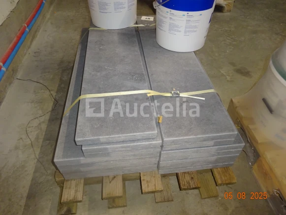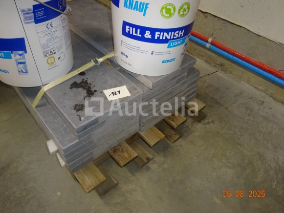 15 treden in blauwe steen van verschillende afmetingen, 2 emmers fill finish kauf