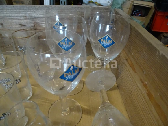Palet van verschillende glazen Detail: zie foto's Opmerking: . Pallet en verlengstukken niet inbegrepen . Breng kratten mee om op te halen . Geen verzending