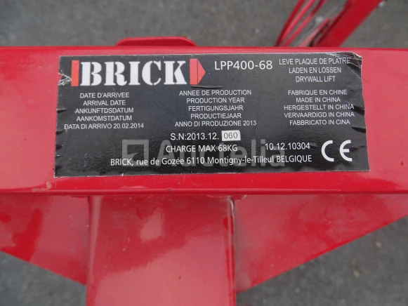 Plaat heffer Merk: BRICK Artikelnummer: LPP400-68 Vouwen Uitbreidbaar in de breedte Uitgevouwen hoogte: 3 m 30 Staat: Functioneel volgens de verkoper Geen verzending