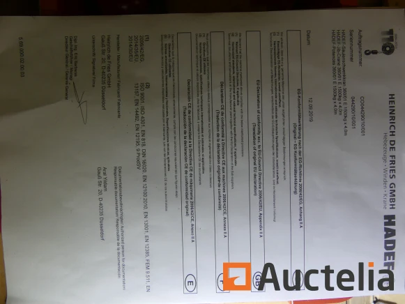 Lengte: 405 cm Hoogte: 485 cm Capaciteit: 1500 kg Opmerkingen: Nooit geïnstalleerd