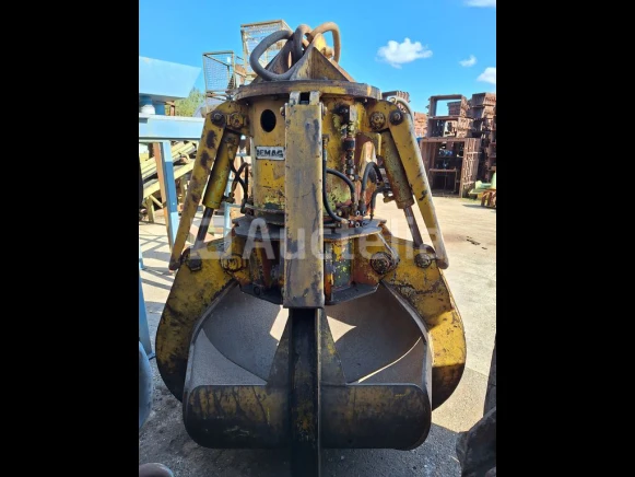 Hydraulische grijper voor rolbrug Merk: DEMAG Met 5 armen Totale hoogte: +/- 1700 mm Buitendiameter bij geopende klem: ±2000 mm