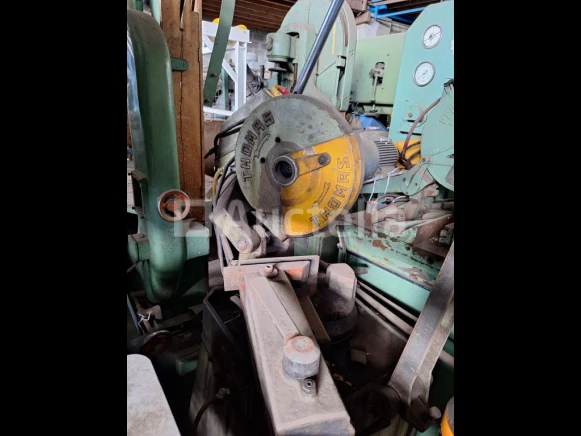 Cirkelzaag voor ijzer Merk: THOMAS/SUPER, Type 315 SUB, Bouwjaar: 1986, MOTOR: 2/3 PK, 1400/2800 tpm, 220 V, 2 versnellingen met pomp, met mesbescherming, met gegradueerde ondeugden, links-rechts snede, op de voet