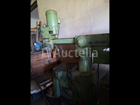 Radiale boormachine Merk: RAPID OTTO MULLER Type SR23, Bouwjaar: 1959, Serienummer: 1122 Met tafel naar keuze om te bespreken MOTOR: 2 snelheden, 380 V, Boorsnelheid van 115 tot 1500 tpm, links/rechts, stuurspanning 220 V, zonder doorn en zonder ondeugden, elektromagnetische vergrendeling van de kolom en de arm, Bereik 700 mm