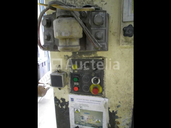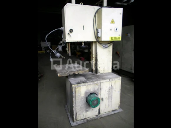 Verticale metalen lintzaag Merk: DEMURGER ULTRA Soort: RU555TFF, Serienummer: 804 Bouwjaar: 2001 Uitwendige afmetingen: 1050 mm x 1340 mm, h. 2440 mm LEROY SOMER motorreductor, 4 kW; 1455 tpm; 230/400V Met schakelkast Noodstopklep, waterpomp, verlichting Tafel: 750 mm x 590 mm, kantelbaar, zonder schaalverdeling Nuttige reikwijdte: 550 mm, nuttige hoogte 500 mm Traploze snelheidsregeling
