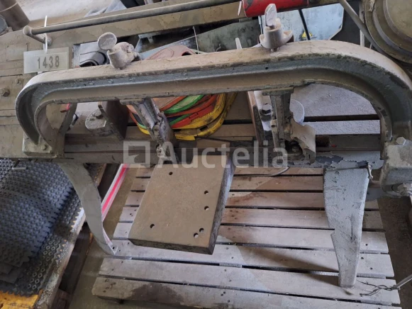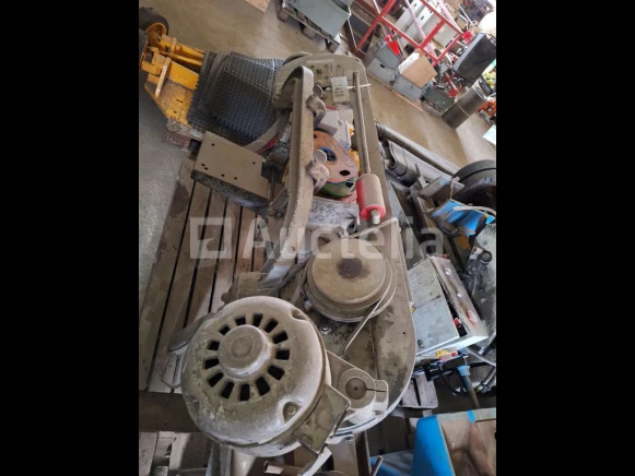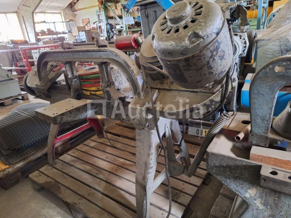Kleine horizontale lintzaag Merk: WELL/USA Soort: 8M Serienummer:10238 Externe afmetingen: Lengte 1800 mm; Breedte: 700mm 3 snelheden p. dekkatrol, De Afstand van de rolas: 1100mm, met verstelbare bankschroef, wieldiameter 350, Blad Verlengde Lengte: 3300mm