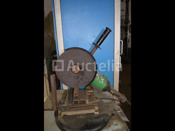 Handmatige slijpmachine op poten Merk: HITACHI Type: G239F, serienummer: D 060203 Motor: 220 V mono Voor schijven Ø 230 mm, 6600 rpm Snijsnelheid: 80 m/s