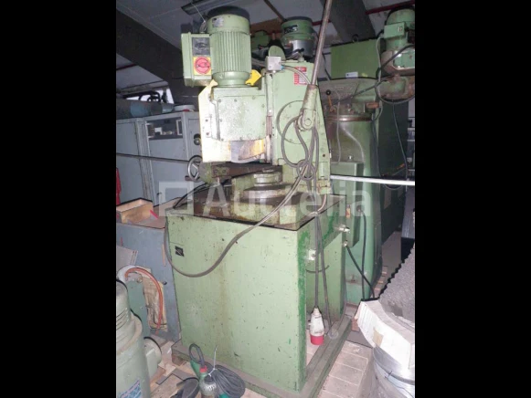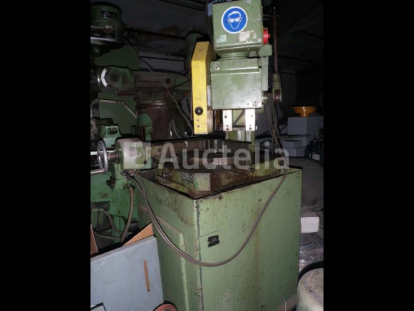 Cirkelzaag voor ijzer Merk: EISELE Type: VMS II 420 Serienummer: 0047 Bouwjaar: 1979 Gewicht: 300 kg Motor: 1,4 / 1,9 kW, 1420 / 2820 tpm, 380 V Met bankschroef en pomp Maximale bladdiameter: 350 mm Snelheid: 40 en 80 tpm 45° verstelbaar naar links en rechts Op de bank