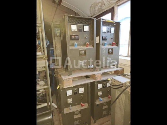 Oude militaire batterijladers Merk: FRANKO Type: S5264 / 024/150 BRÜG, Jaar: 1977 Hoeveelheid: +- 10 Gewicht: 150KG, Serienummer :157880 v1w MOTOR: 380 V triph. 150 ampère. , voor PG- en NiCd-batterijen, 24V 150 Amp.