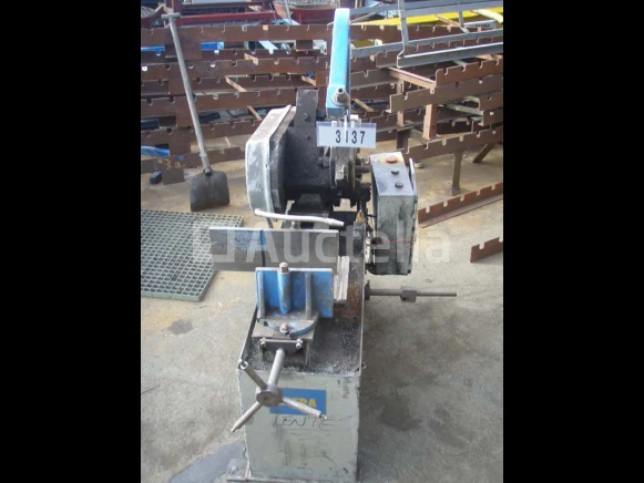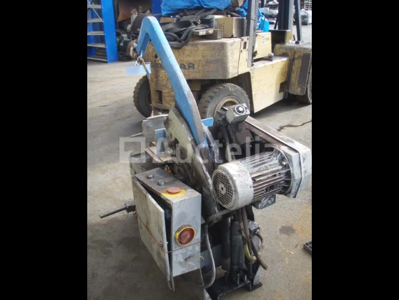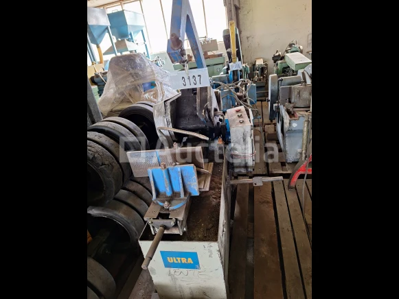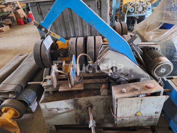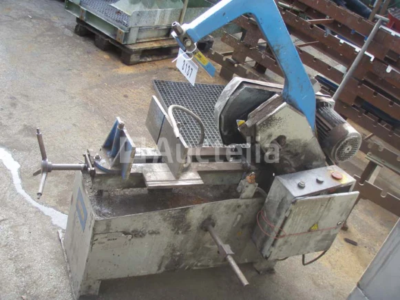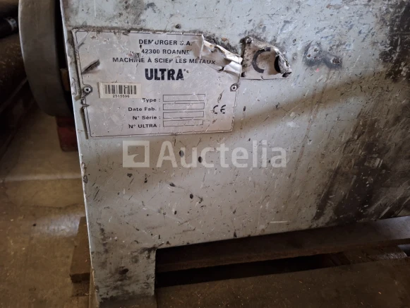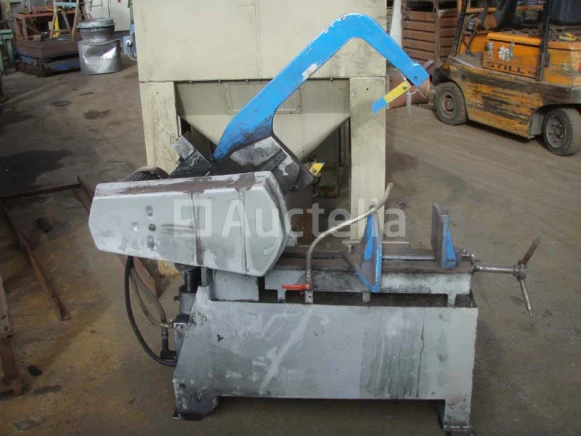 Boog zaag Merk: ULTRA Type: B255S, Serienummer: 255140 Bouwjaar 1999, Externe afmetingen: 1450 x 800, h. 1360 mm (verhoogde arm) MEZ motor serienummer 1040455-0091, maximale bankschroefopening 150mm Automatische afdaling, draaibare bankschroef, met schakelkast