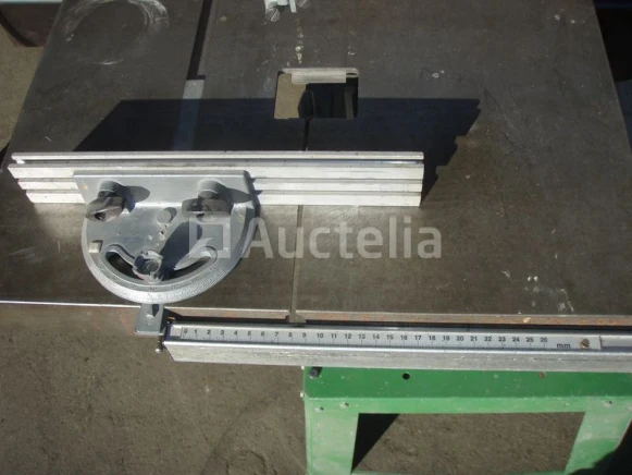Kleine houten lintzaag Merk: MÜLLER; Soort: SR340 Serienummer: 0023405251 Bouwjaar: 2000 Afmetingen: breedte 550 mm, diepte 750 mm, hoogte 1600 mm Motor: 0,55 kW, 220 V enkelfasig, merk EMC, type GM80A4, 1400 tpm Op een stevig fundament Snijsnelheid: 5 m/s en 14m/s Per appartement naar 2 verdiepingen Houtdikte: max. 90mm Kantelbare tafel: 540 mm x 420 mm, met schaalverdeling Bereik 320 mm Blad Lengte 2300mm Met stop