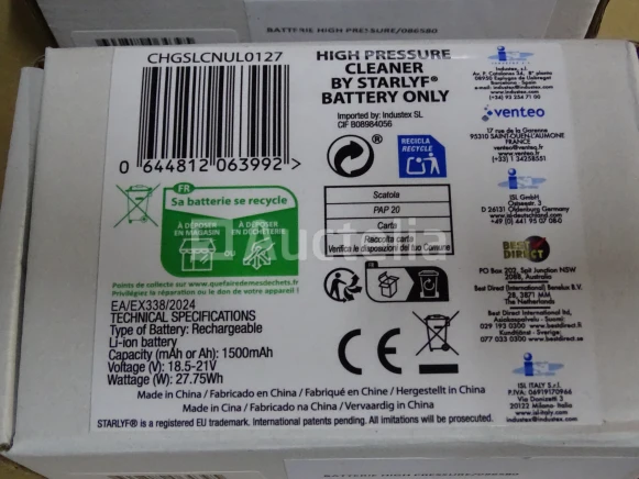 21 V batterij Merk: STARLYF Aantal: 10 stuks Compatibel met de eerder verkochte hogedrukreiniger Winkelwaarde van het kavel: 269 € Conditie: Nieuw Verzending: Tarief B