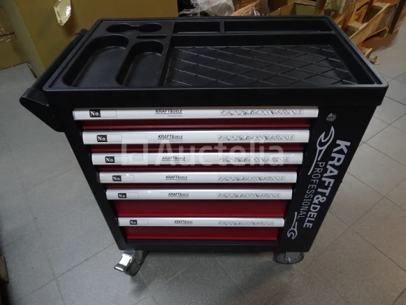 Lege gereedschapswagen met 6 lades en een zijzijde voor opslag Merk: KRAFT&DELE Geleverd met 2 sleutels Met 2 wielen met rem en 2 wielen zonder rem Dimensie: . Totale breedte: 83 cm . Totale diepte: 46 cm . Totale hoogte met wielen: 88 cm Conditie: Nieuw Verzending: Tarief D