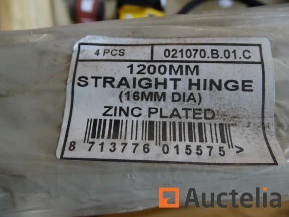 Versterkt scharnier Hoeveelheid: 20 stuks Dimensie: . Lengte: 120 cm . Breedte: 45 mm Conditie: Nieuw Verzending: Tarief D