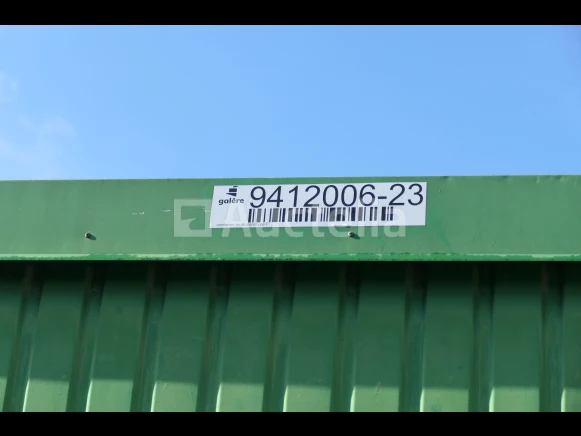 Container type F Merk: Warsco Lengte: 600 cm Breedte: 300 cm Hoogte: 250 cm Intern verkopersnummer (Ref) : 9412006-23 Aantal: 1 Niet inbegrepen: Groot zeildoek Serienummer: 2010-18050 Controle nummer: 941323200-gal Opmerkingen: Dekzeil op een groot gezicht, bezoek aanbevolen
