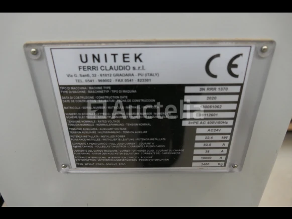 Sorterende schuurmachine Merk: Unitek Artikelnummer: 3NRRR1370 Jaar: 2020 Spanning: 230V driefasig Lengte: 215 cm Breedte: 202 cm Hoogte: 215 cm Gewicht: 2400 kg Vermogen: 22,4 kW Aantal: 1 Getest: Ja Inbegrepen: Schuurband Balans: +/- 10 Maximale schuurbreedte: 135 cm Staat: machine bijna nieuw Getest = de machine is gestart zonder meer Opmerkingen: Geen hijsapparatuur ter plaatse, bezoek aanbevolen