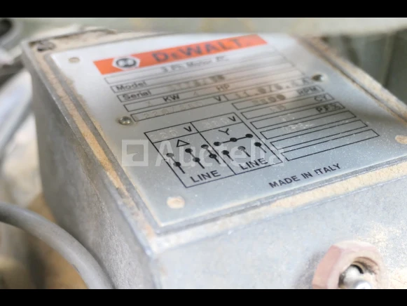 Radiale zaag Merk: DeWalt Model: 1875 Spanning: 400V driefasig Lengte: 145 cm Breedte: 105 cm Hoogte: 140 cm Vermogen: 3 kW Aantal: 1 Getest: Ja Getest = de machine is gestart zonder meer Opmerkingen: Geen hijsapparatuur ter plaatse, bezoek aanbevolen
