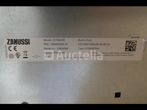 Inductie kookplaat Merk: Zanussi Model: ZITN643X Lengte: 58 cm Breedte: 51 cm Aantal: 1 Getest: Nee Spanning: enkel- of driefasig, zie brochure Tweedehands materiaal Opmerkingen: Aanbevolen bezoek