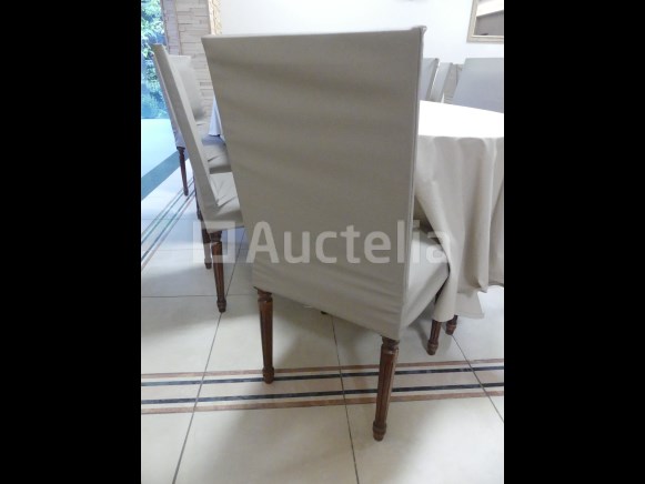 Louis 16 stijl beukenhouten stoelen Lengte: 48 cm Breedte: 48 cm Hoogte: 96 cm Aantal: +- 8 Receptiestoelen in beige stoffen Voorzien van een kunstlederen bekleding en 1 stoffen stoelbekleding Sommige moeten worden hersteld Opmerkingen: Wie het eerst komt, het eerst maalt