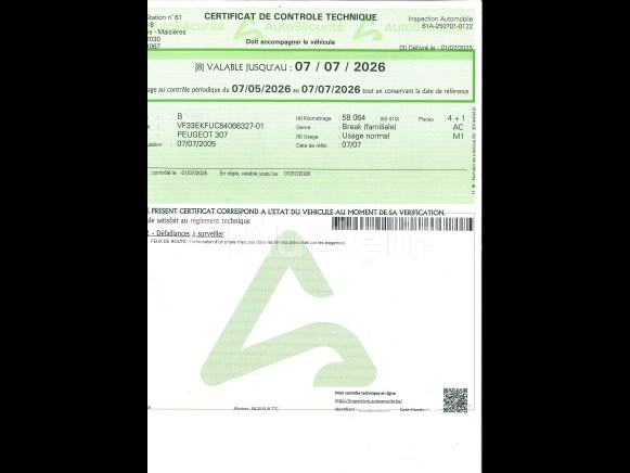 Auto peugeot 307 (2005-58.925 km-vin:vf33ekfuc84066327)