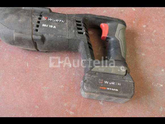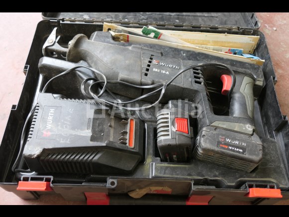 Reciprozaag op accu Merk: Würth Model: SBS 18-A Aantal: 1 Getest: Ja Machine geleverd in de originele doos met 2 batterijen en de oplader Opmerkingen: Aanbevolen bezoek