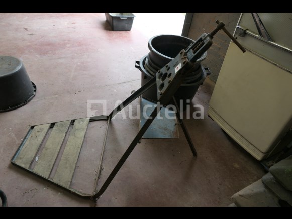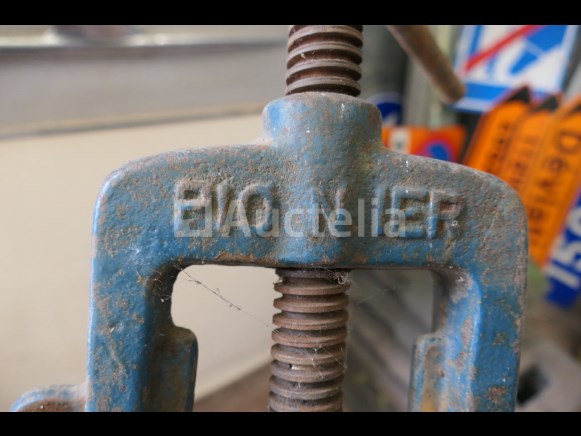 Loodgietersbankschroef op een statief Merk: Pionier Lengte: 90 cm Breedte: 60 cm Hoogte: 115 cm Aantal: 1 Opmerkingen: Aanbevolen bezoek