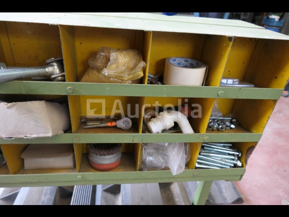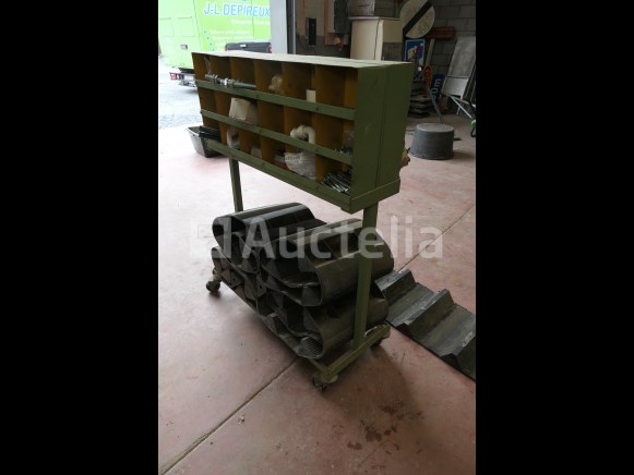 Inbegrepen: Inhoud plank: Bouten, houtdraadschroeven,... Werkplaats trolley Afmetingen: 91 cm x 40 cm x 124 cm Rubberen dakdekker trappen Afmetingen: 170 cm x 40 cm Hoeveelheid: +/-5 Opmerkingen: Aanbevolen bezoek