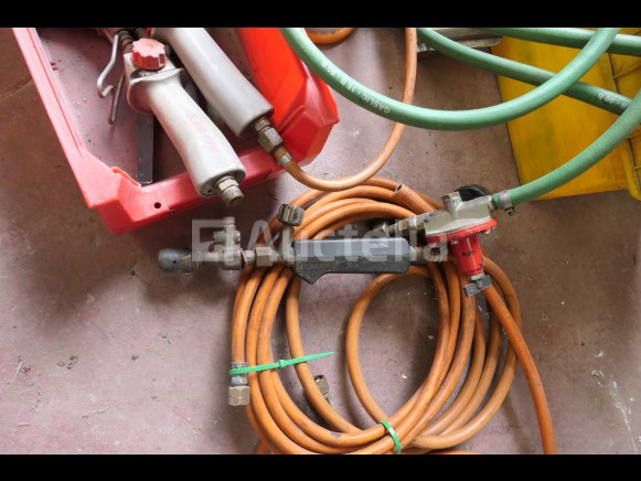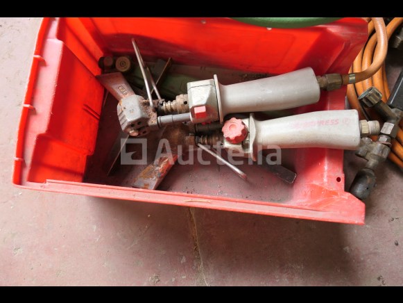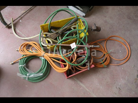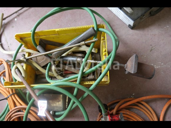 Diverse dakbedekkingsgereedschappen; fakkels...