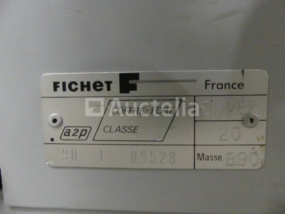 Veilig Merk: Fichet Lengte: 78 cm Breedte: 70 cm Hoogte: 104 cm Staat: Niet getest Wijd open kofferbak Geleverd zonder sleutel
