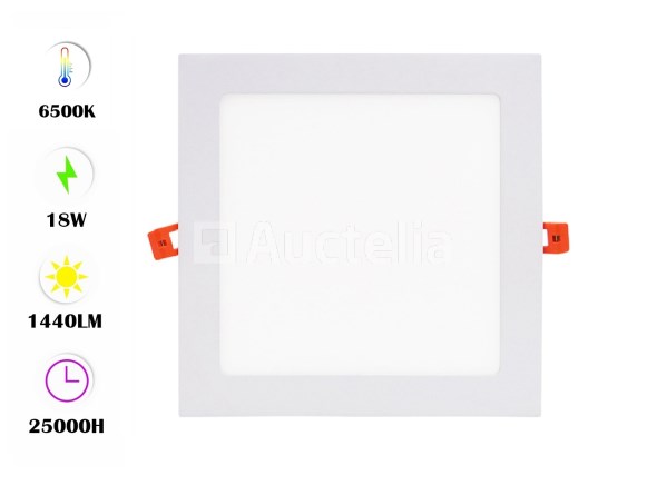 20 x inbouw LED-panelen – Vierkante vorm – Vermogen 18W – LED-type: SMD – Kleurtemperatuur 6500K (koud wit) – Lichtstroom: 1440 lumen – Afmetingen: 225 x 225 x 28 mm – Montagegrootte: 200 mm – Spanning: 220-240V – IP20– Levensduur: 30.000 uur – Beamingshoek: 180° – Inclusief driver – Ideaal voor kantoren, winkels, vergaderruimtes en wooninterieurs.