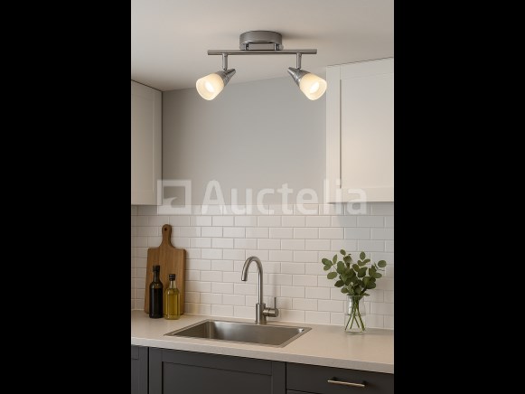 6 x LED plafondlamp 2 spots model DI03 – Maximaal vermogen 2 x 5W –Kleurtemperatuur 4000K (neutraal wit) – Lichtstroom: 650 lumen – Afmetingen: 305 x 50 mm – Beschermingsgraad: IP20 – Kleur: Zilver – Spanning: 220-240V (50/60 Hz) – Inclusief lampen. Ideaal voor moderne binnenverlichting in woonkamersNs, slaapkamers, kantoren en gangen.