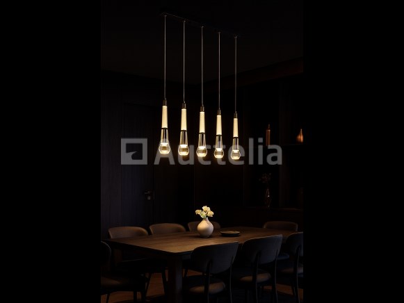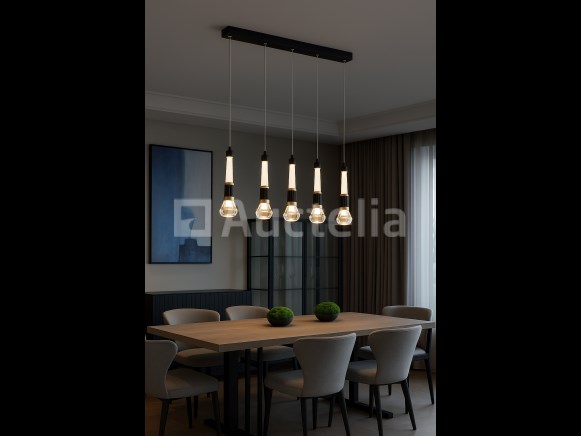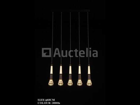 LED hanglamp model B032/5 – Kleurtemperatuur 3000K (warm wit) – Breedte: 600 mm – HoogteVerstelbaar – Lichtbron: geïntegreerde LED-strip – Spanning: 220-240V (50/60 Hz) – Inclusief montageset – Ideaal voor moderne binnenverlichting: woonkamers, eetkamers, kantoren of designruimtes – 3 jaar garantie.