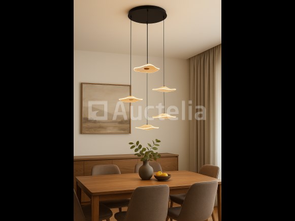 Hanglamp LED model B064/5 – Kleurtemperatuur 3000K (warm wit) – Diameter: 350 mm – Verstelbare hoogte – LItbron: geïntegreerde LED-strip – Spanning: 220-240V (50/60 Hz) – Inclusief montagemateriaal – Ontworpen voor binnenverlichting met een modern en elegant design – Perfect voor woonkamers, eetkamers, slaapkamers en kantoren – 3 jaar garantie.