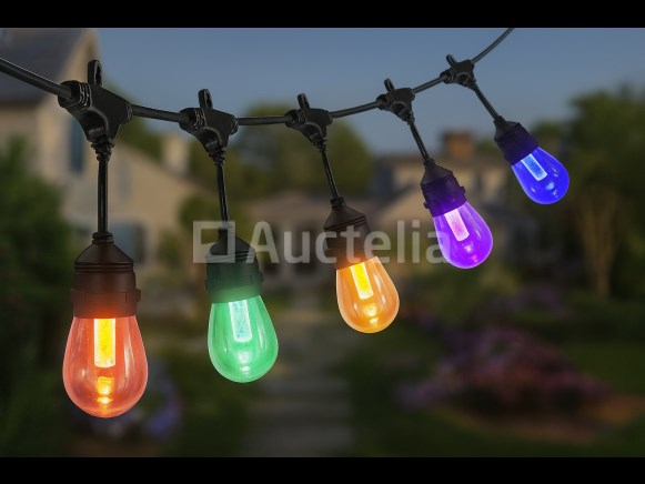 4 x RGB LED lichtslinger van elk 10 meter - Waterdicht (IP65) - E27 fittingen - Met coVoeding en stopcontact - Geschikt voor gebruik binnen en buiten - Spanning: 220-240V (50-60Hz) - Levensduur: 30.000 uur - IRC (RA) 90 - Inclusief montageset - Inclusief lampen - Ideaal voor tuinen, terrassen, etalages, magazijnenNs, hotels, restaurants en woonruimtes