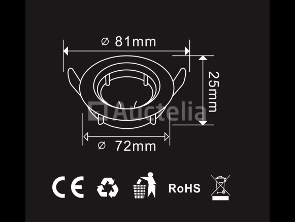100 x GU10 inbouwarmatuur met lamphouder – Ingebouwd model – Ronde vorm – Kleur: Wit – Gemaakt van aluminiumM van hoge kwaliteit – Afmetingen: Ø 80 x 25 mm – Inbouwdiameter: Ø 70 mm – Draaibaar op ±45° voor flexibele verlichting – Beamingshoek: 120° – Inclusief GU10 fitting – Compatibel met alle GU10 en MR16 spots (LED of halogeen) – PRection: IP20 (binnengebruik) – Lampen niet inbegrepen.
