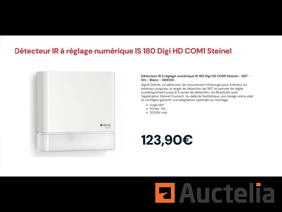 Bewegingsmelder Merk: STEINEL Model: IS 180 Digi HD COM1 Vermogen: 2000 W Conditie: Nieuw Verzending: Tarief A