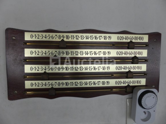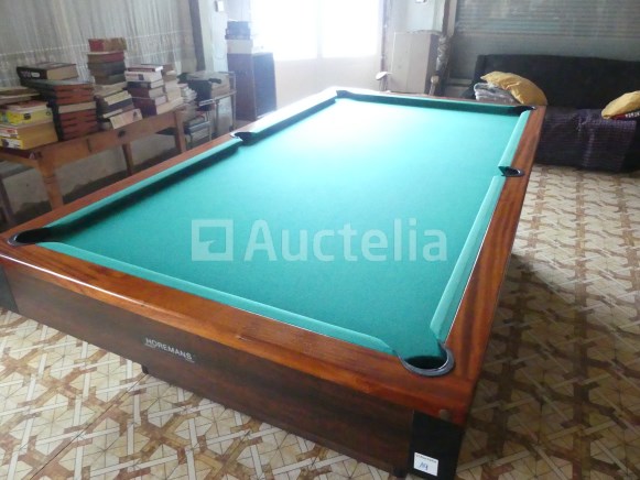 Lengte: 280 cm Breedte: 153 cm Hoogte: 80 cm Geleverd met 2 sets ballen en keuen Aan 2 zijden te restaureren