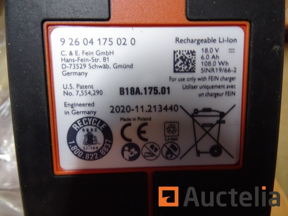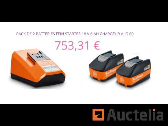 Batterij Merk: FEIN Model: 18 V 6 Ah Li-ion Hoeveelheid: 2 stuks Batterij Merk: FEIN Model: ALG 80 Conditie: Nieuw Verzending: Tarief B