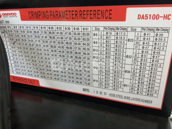 Crimping range 15-63mm; max opening 75mm; pressure 53,5 Mpa; kracht 500 T; 3000W; 380V