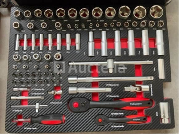 Aluminium: ja; met inhoud: ja; omschrijving: 238 delig; w.o. steek- ringsleutel met ratel; diverse tangen; doppenset met ratel; diverse schroevendraaiers; precisieschroevendraaiers; inbussleutel; diverse bits; klauwhamer; schaar; rolmaat; waterpas; tapijtmes;