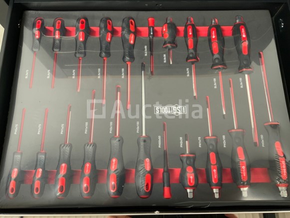 258 delig; schroevendraaiers; bitset; tangen; sleutels; etc; zwenkwielen met rem; 7 lades; 6 gevuld; 760x460x980mm 80KG