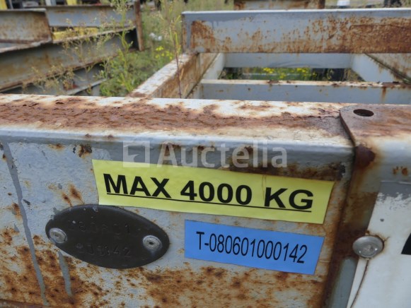 4 T aanhangwagen voor materiaalbehandeling Lengte: 460 cm Breedte: 110 cm Hoogte: 90 cm Interne verkoper nummer (Ref) : 214 Capaciteit: 4 T Dolly vooras