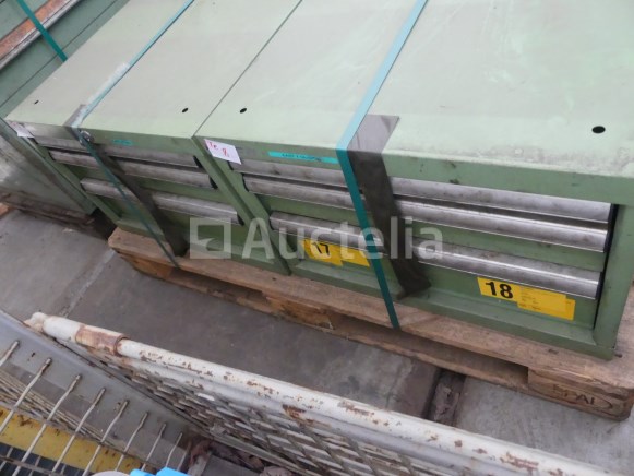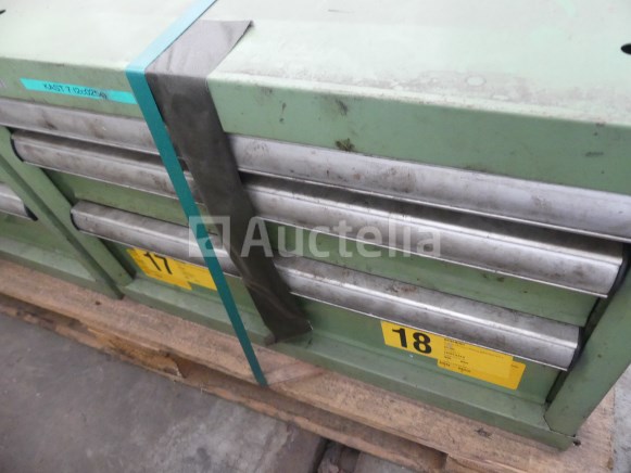 Werkplaatskast met 3 lades Merk: Lista Lengte: 72 cm Breedte: 56 cm Hoogte: 39 cm Intern verkopersnummer (Ref) : T7+T8 Aantal: 2