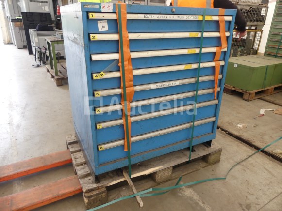 Werkplaatskast met 8 lades Merk: Lista Lengte: 102 cm Breedte: 72 cm Hoogte: 110 cm Intern verkopersnummer (Ref): T15